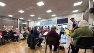 Ann Heymans organised this workshop which took place on 7th March at West Leigh Infants School in Backwell, near Bristol. This school was built in 1969, typically flat-roofed and not designed with the performance of early music in mind! However, there is parking and level access, and a warm welcome from the friendly and helpful School Business Manager. We were based in the large and high-ceilinged hall which easily accommodated the seven instrumentalists and about thirty singers, some arriving by train.