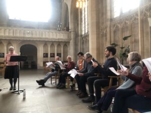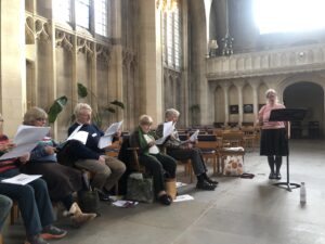 Our confidence greatly increased during the day, and by the time we reached the conclusion of the workshop we felt reasonably prepared to ‘perform’ it to an audience in the chapel. The audience started off with only two people but as others passing the chapel heard the sound of singing floating out, they came in to join the listeners, and by the end there was very warm and appreciative applause from an audience in double figures.